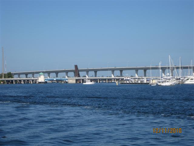 Monday, December 13, 2010, Day 78: We traveled the 6 miles from Pompano Beach to Ft. Lauderdale. The strong winds, 20 knots from the west, made maneuvering difficult. We tied up at the Coral Ridge Yacht Club. It was great to see Chris and Joyce (Celebrate, our sponsors here) when they visited in the afternoon. Kathy, an American Express/sailing friend of Linda’s for 28 years, and her friends Priscilla and Robert came for cocktails aboard. Wonderful to see them after Kathy’s many years in Asia. It is unusually cold here — the temperature range was 63/43, which is very cold for Ft. Lauderdale. The wind makes it feel even colder.
