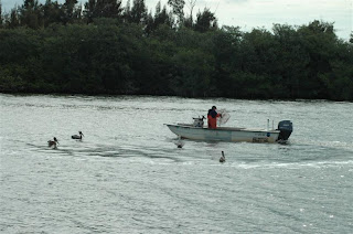 In the river area local boaters set their traps for something. We heard today that they catch “river shrimp” (like small lobsters). Whatever, he is going for, he has an audience waiting for handouts.