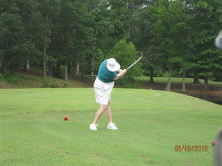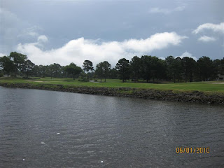 We played tourists in Myrtle Beach. Unfortunately, Mark had been fighting his annual cold and he managed to get us to the Myrtle Beach Yacht Club, but then it was “lights out” for him for two days. So Wednesday Mom and I drove all over and figured out where we were golfing, where the airport was and picked up stuff at West Marine. Thursday, Mark tried but could not generate enough energy to golf so Mom and I went. We had a great day and the River Hills Golf Course was very nice and friendly – think I only lost three balls in the water. Signs near the water warned not to try to retrieve any golf balls that went in – hmmmm, I wonder why???
