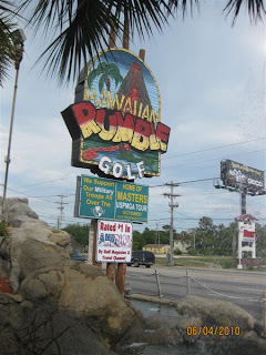 Once Mark recovered enough to stand up, we toured more of Myrtle Beach, walked on the beach, had an early bird special at the Chesapeake Grill for seafood and then we went to play miniature golf. There are 49 miniature golf courses in Myrtle Beach area and some were pretty spectacular. We played at the course where they play the “Masters” of Miniature golf. We look forward to going back and playing the other 48 courses. I just hope it turns out better than this time as I owed both Mark and Mom $4.00 each once we were done. I will have you know that I pay my bills – between the two of them they owed me over $50.00 from playing pinochle that I have yet to seeJ