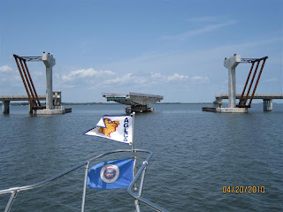 Titusville is the closest town to the KennedySpaceCenter and many cruisers will watch shuttle launches and landings from there. As we progressed north we began to hear radio chatter that Discovery had not landed earlier. It was about 9:30 and every boater was looking to the sky and listening. I was out on the bow straining both eyes and ears and of course, had the camera. After a few minutes Mark called out that Discovery was already on the ground. NOTHING! But we weren’t the only ones – by the chatter on the radio in our area no one heard or saw anything. I guess we were still a little too far south – “missed it by that much”. Later as we neared Titusville we were able to see the KennedySpaceCenter and the launch tower.