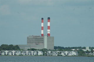 Titusville is the closest town to the KennedySpaceCenter and many cruisers will watch shuttle launches and landings from there. As we progressed north we began to hear radio chatter that Discovery had not landed earlier. It was about 9:30 and every boater was looking to the sky and listening. I was out on the bow straining both eyes and ears and of course, had the camera. After a few minutes Mark called out that Discovery was already on the ground. NOTHING! But we weren’t the only ones – by the chatter on the radio in our area no one heard or saw anything. I guess we were still a little too far south – “missed it by that much”. Later as we neared Titusville we were able to see the KennedySpaceCenter and the launch tower.