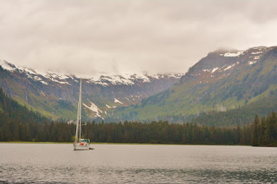 The winds remained calm overnight and we slept well at anchor. Nevertheless, at 0502 the anchor released from the sticky and stinky black mud in Foggy Bay and we reversed course out the narrow channel into Revillagigedo Channel and headed for Ketchikan. The weather gods were not done, we experienced wind, waves and opposing swells as we chased the remains of fog banks covering the channel. Past Twin Islands, the wind and seas calmed totally and we headed without further incident up Tongass Narrows.