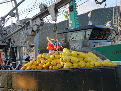 On Wednesday 7AM we pulled the hook and headed deep into the head of Redfish Bay to retrieve our crap traps. Our hopes of dining on fresh crab evaporated when we noticed a pair of sea otters lounging in the back bay. The otters have steadily reduced the SE Alaska crab population over the years such that when you see one, you can be assured there are no crabs remaining in the area.