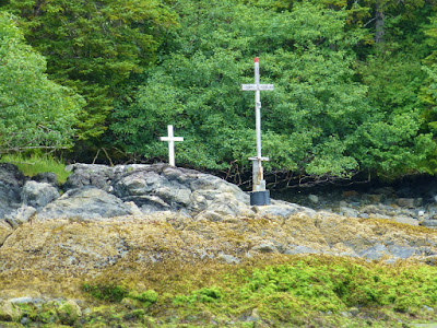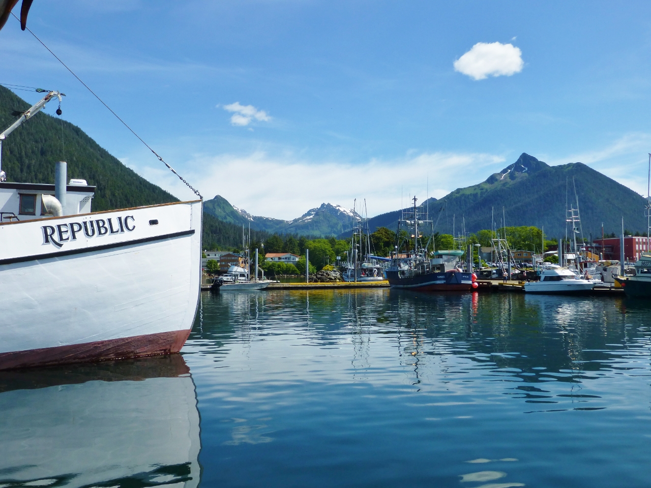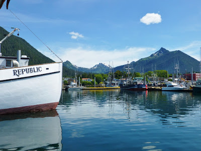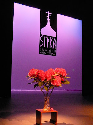 Friday mid-morning after four hours of hootchie dragging, we reeled’em in and headed away from the Bay for Bjorka Island. Due to the low tide on the inside route at Second Narrows, we took the outside route which featured a light breeze and low swell. By 11 AM we again started trolling but without action. After 2 hours we called it a day and headed to town. Sitka Harbors found the Wild Blue moorage at familiar Eliason Harbor where we cleaned up for the evening concert at the Sitka Classicial Music Festival.