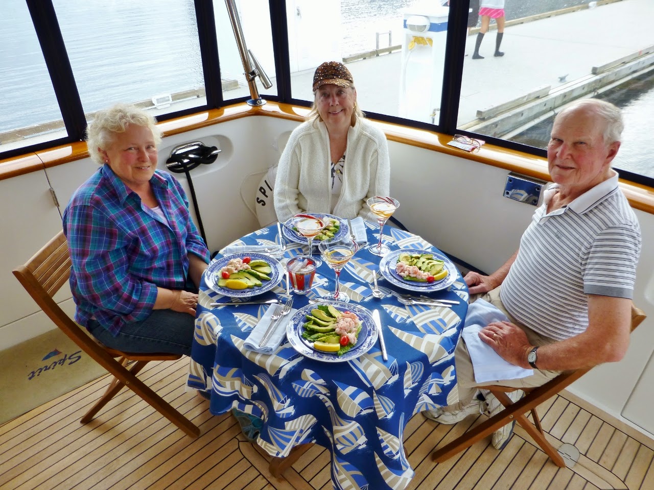 | Enjoying evening dinner in the cockpit with Ted and Lisa Marx |