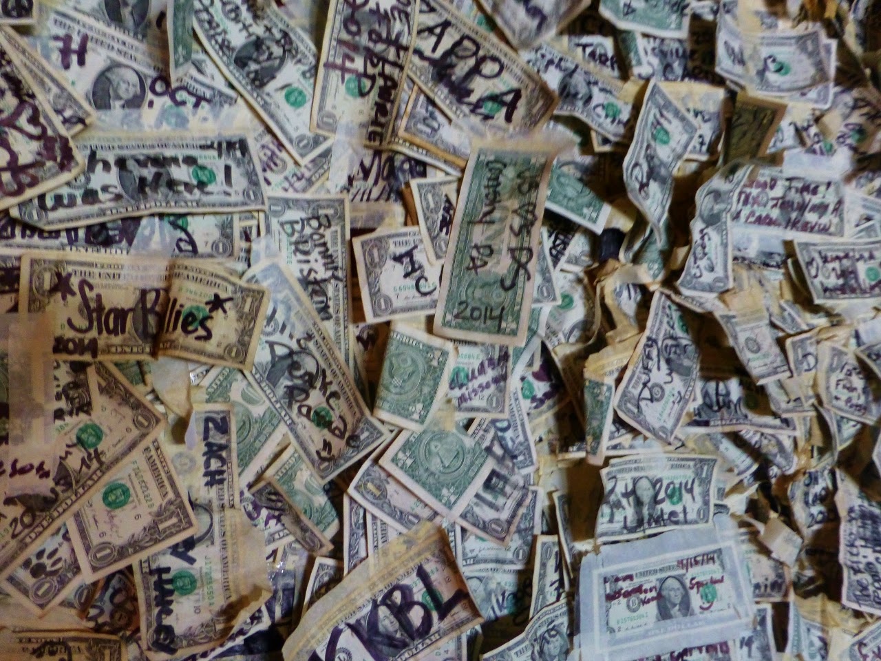 | Some of the “wallpaper” at Cabbage Key Restaurant |