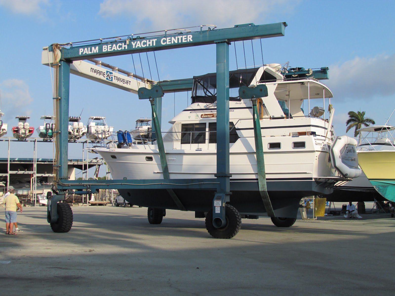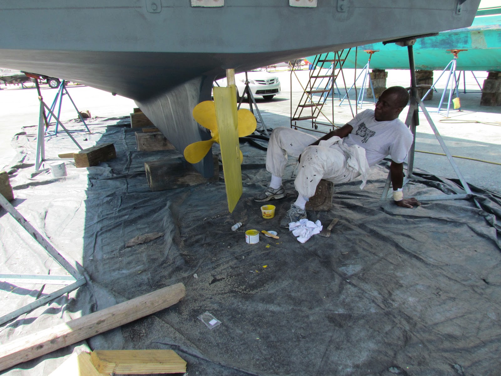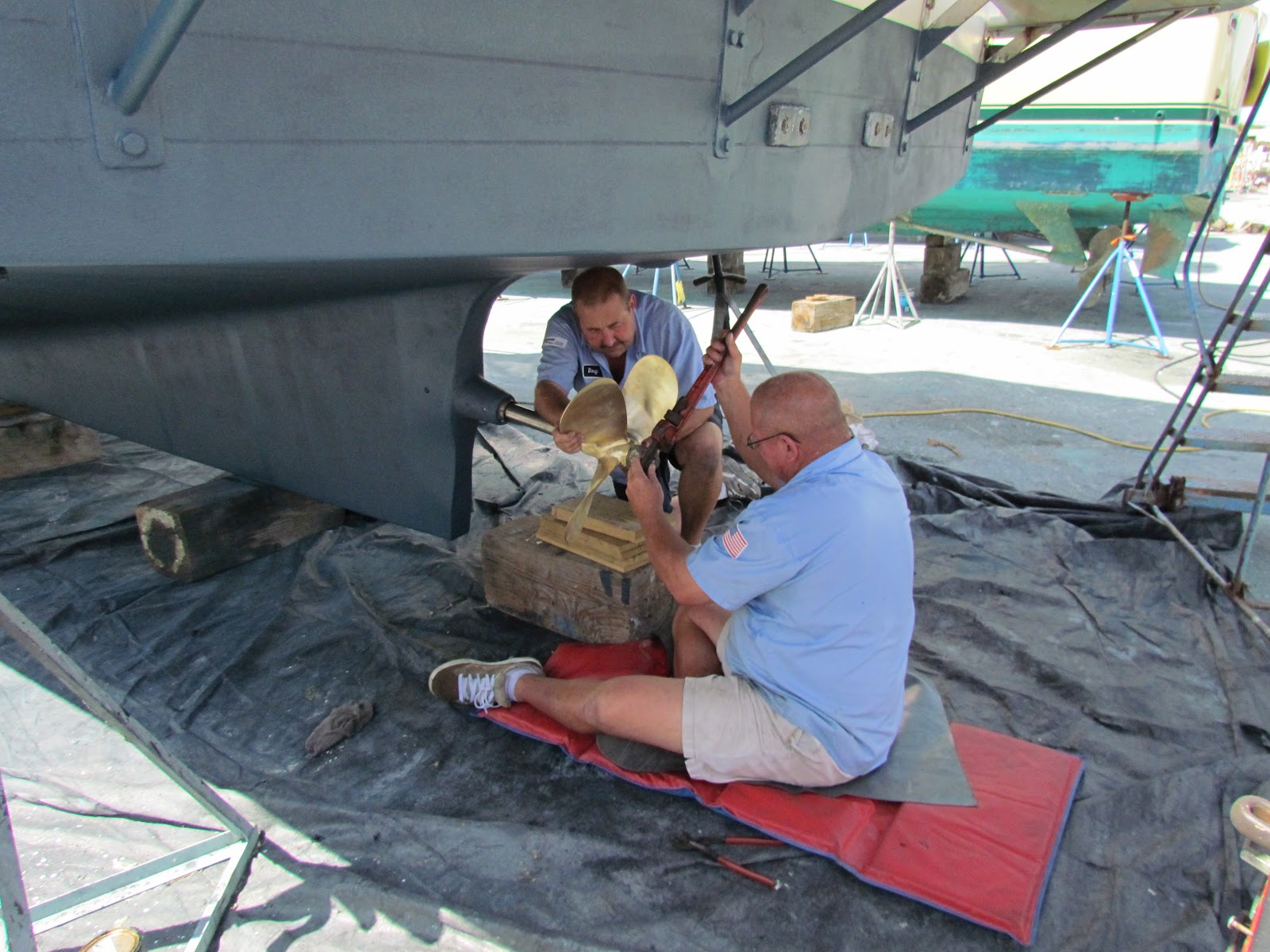 Since we were up in the air anyway we decided to have the bottom of the boat repainted since it had not been done in almost 2 years. When it came out of the water it was in perfect shape with only a few barnacles on the bottom where we had run aground and scraped the paint off.