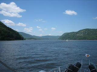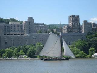 One of the highlights of our cruising day was passing West Point Military Academy. Although cruisers can no longer stop there (because of heightened security since 9/11), we enjoyed the impressive view, as did the passengers aboard Pete Seeger’s sailing vessel, “Clearwater,” whose mission to clean up the Hudson has been quite successful.