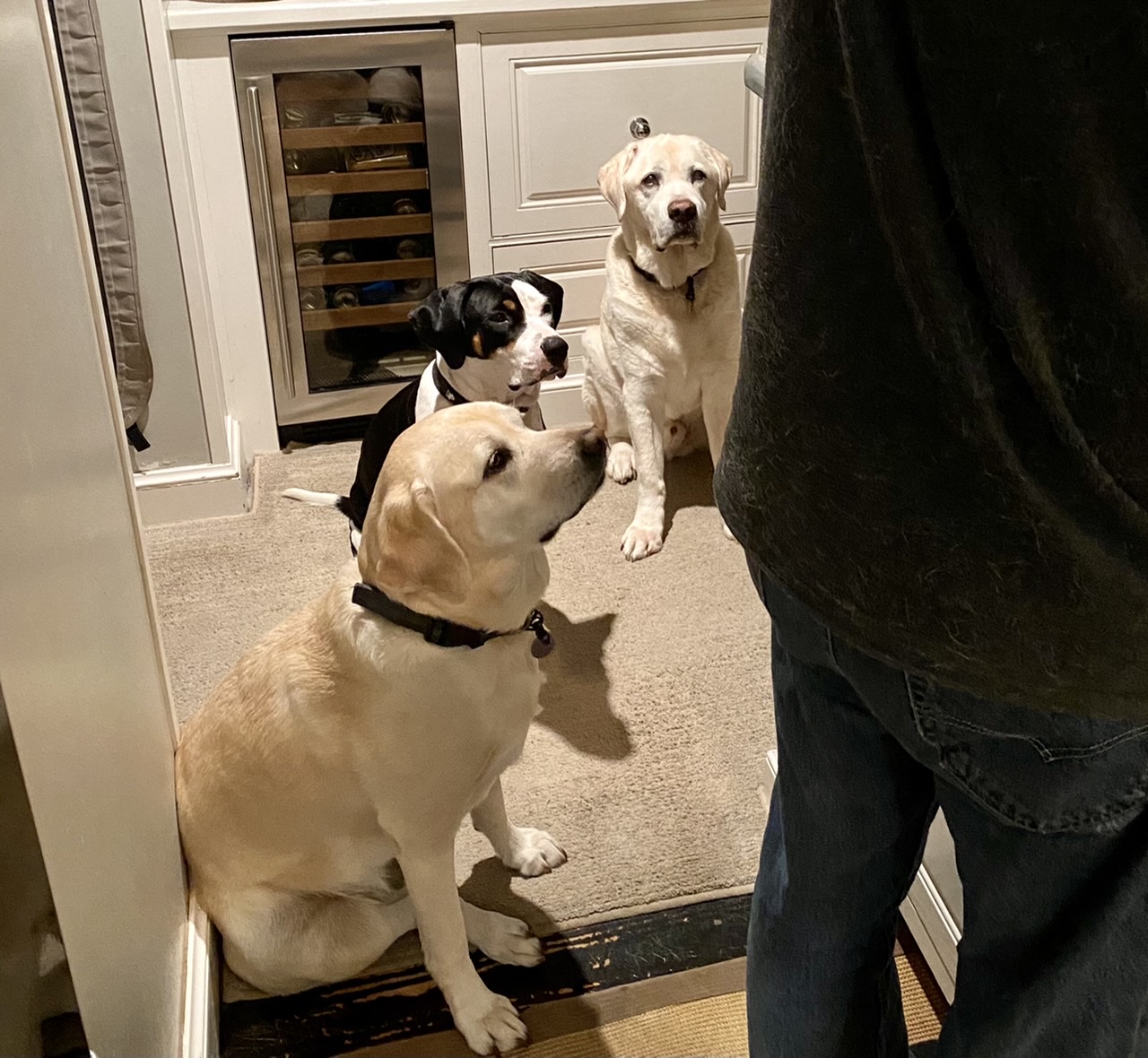 This morning Mom finished a jar and asked Dad to combine the new jar of natural peanut butter. The crew took notice. They’re hoping he’ll give them another dollop. Pretty sure they won’t be disappointed…😉