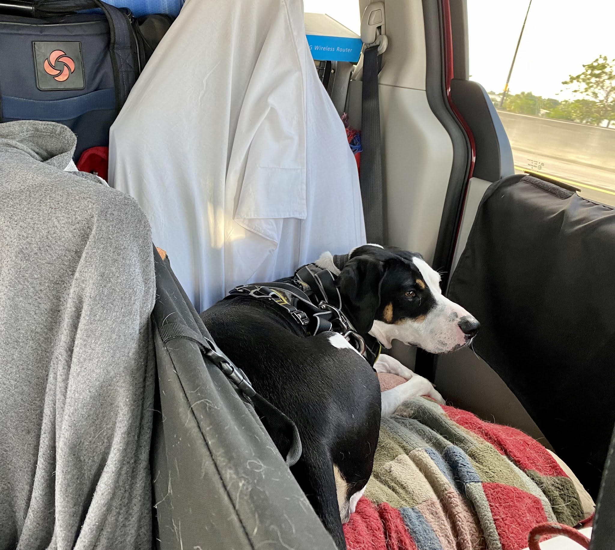After stuffing a rental van to the gills, the crew took off for their new home. It was close but there was room for Dee Dee and Dora on the two bucket seats, while Dylan lounged in his bed on the floor.