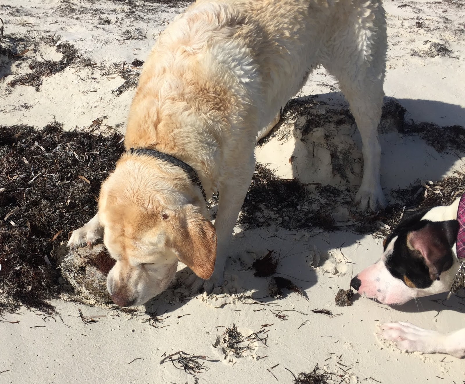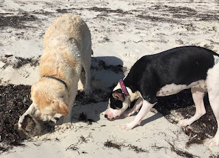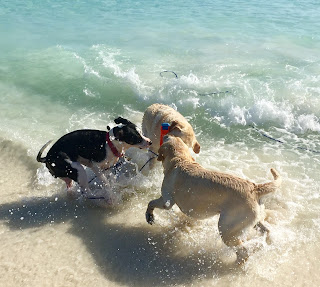 For those who have followed the blog for some time, you might remember that Dee Dee, in her youth, had to be tethered at the beach. She seemed to think she could swim to Portugal.