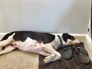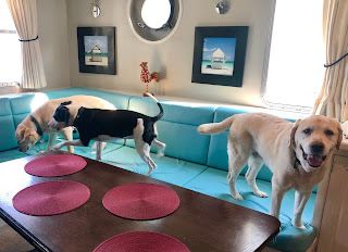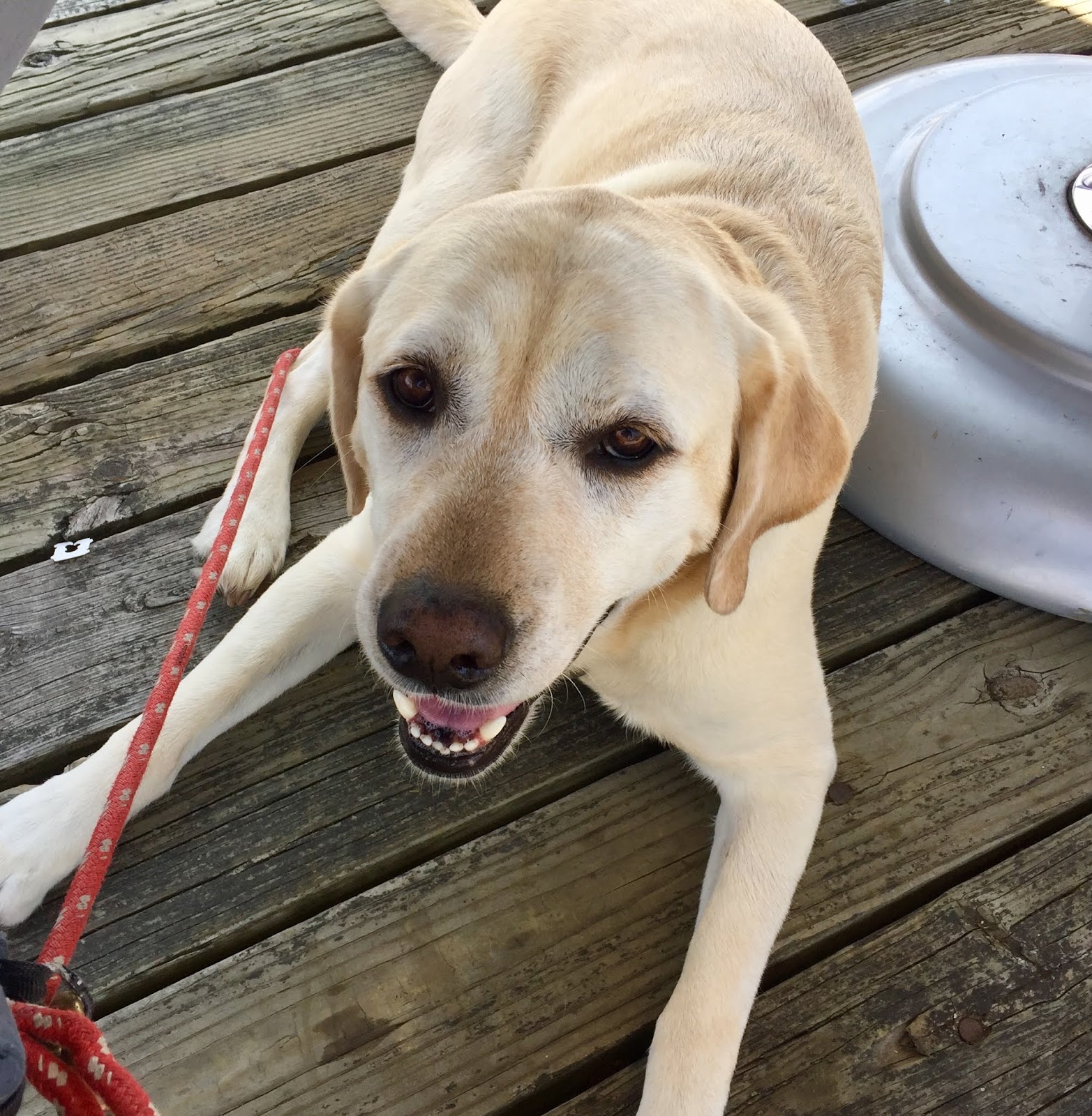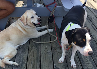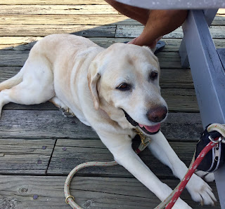 It’s been old home week for Dylan and Dee Dee who have spent many an hour lounging at the dock. Dee Dee knows to grab the shady spot under the picnic table and relax.