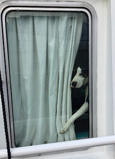Then it’s Dee Dee’s turn. The kids let Mom know when it’s time to get out of the heat and back to the blessed A/C on the boat. This morning things had cooled after a fierce storm last night so the walk was longer than it has been.