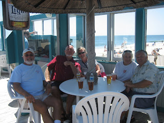 Then we had lunch at the Tiki Bar at Martell’s, a local institution. Sitting next to Ken is Captain Larry and his wife, Sue. They cruised the Great Loop in 2007 with Jean and Steve (on the right). Larry and Sue now have a home in the area, and they graciously hosted us, supplying cars, a swimming pool , and great companionship throughout our stay. Larry even did a little work in our engine room. You can’t beat that!