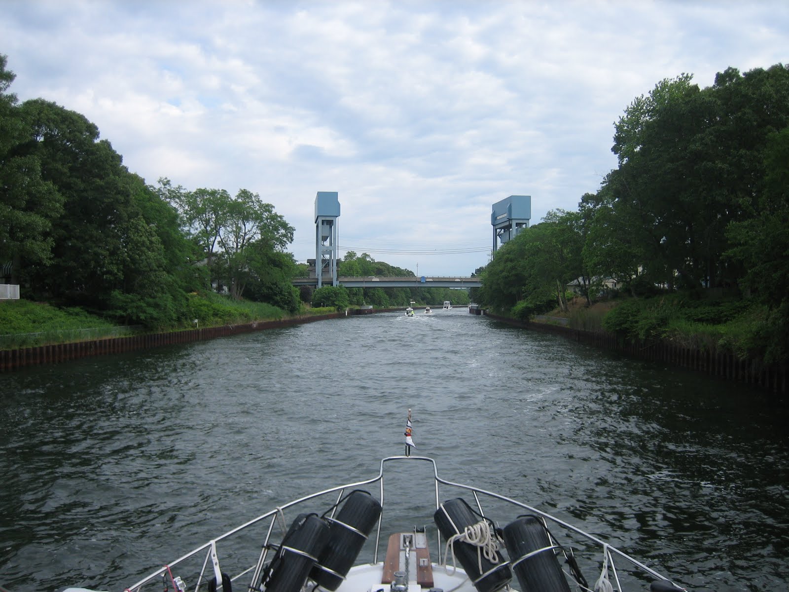 When we had risen to the top of the lock, the doors opened and we all moved out of the lock.