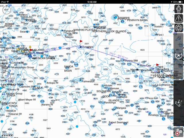 | Apia, on our iSailor… forget the Navnet charting, it’s one mile off! |
