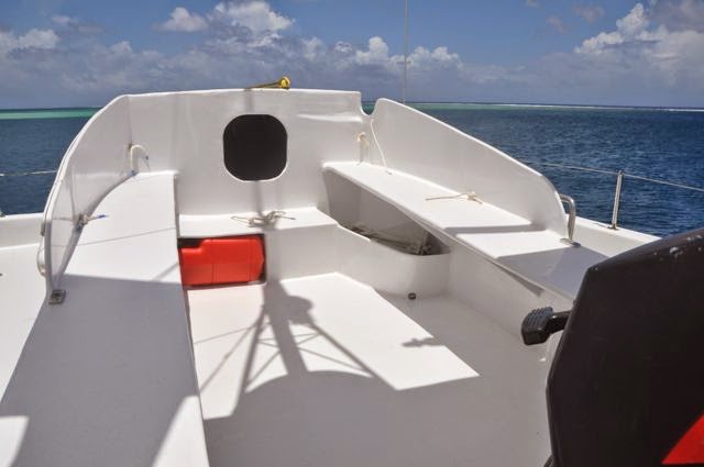 TAHANEA (again!) – To give everyone a break and a healthy convalescence, we took our little family for a Tuamotu Cruise. Williams joined us to our favorite Tahanea for 3 days of great hunting, catching grouper, “Tarefa” and “Carangues,” cleaning fish all day long, freezing it and eating it as never before! Our fishing trip was a great test for Do-mini who loves trolling, stable and roomy.