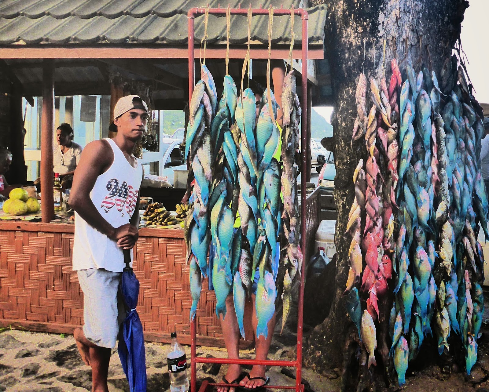 With more fishing came more eating of the supposedly “Safe” and non-ciguateric lagoon fish: rainbow jacks, marbled groupers and “Bec de Canne.” It was a fish-fest soon to be regretted as we all started to feel a touch of ciguatera poisoning: itchy palms and sole of feet, itchy skin, “bubbly” tip of the tongue, numbness of the throat and, for Caro who was worst hit, extreme fatigue and chills. Ooops… no more lagoon fish for us for at least 90 days, then only small amount and only once or twice a week. We shipped Caro and the kids back by plane, their cooler filled with vacuum-packed frozen fish that, I hope, they will wait a while to eat.