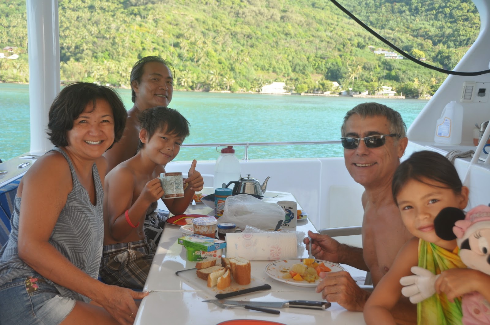 During our stay in Marina Taina, Tahiti has been hit with an epidemic of Chikungunya, a Dengue-like fever whose rheumatismal effect may last for months. Over 70,000 cases have been officially reported. Of our little family of 15, fourteen of them (including JP) contracted the disease. Only Yours Truly, slathered in DEET and wearing long sleeves and pants in 90F temperature, and not getting off the boat very much, was spared. Phew!