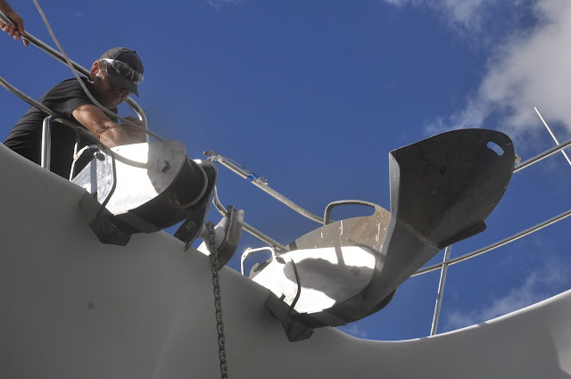It was a mad dash to race the tide, but Kit had us on schedule and on track. One hour after high tide, we threaded the narrow pass, with barely 50 cm under the hulls (we draught 1.20m) and a few inches on each side (7 meter wide.) Under the delirious applause of the entire village, we dropped the hook in this splendid lagoon, the 1st yacht ever to do so. JP was suddenly the hero, the “Mensch” who had proven that Peskarus was a desirable anchorage.