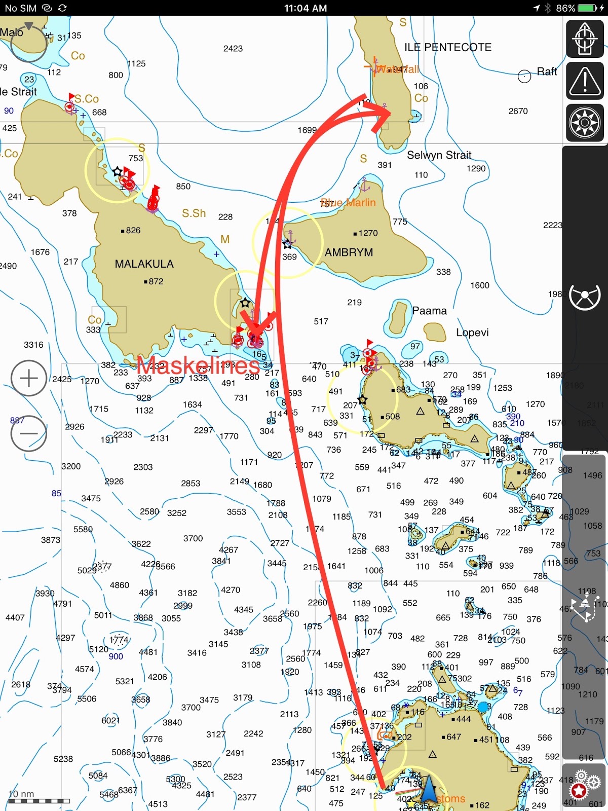 At the southeast point of Malakula Island is a small archipelago: The Maskalynes. It’s a small group of tiny islands, some lined with mangroves, others fringed with reefs and white sand beaches, and we thought we’d check them out. Our first visit took us to Awai, a cul-de-sac anchorage closed by a reef that looked really quiet and peaceful. It was.