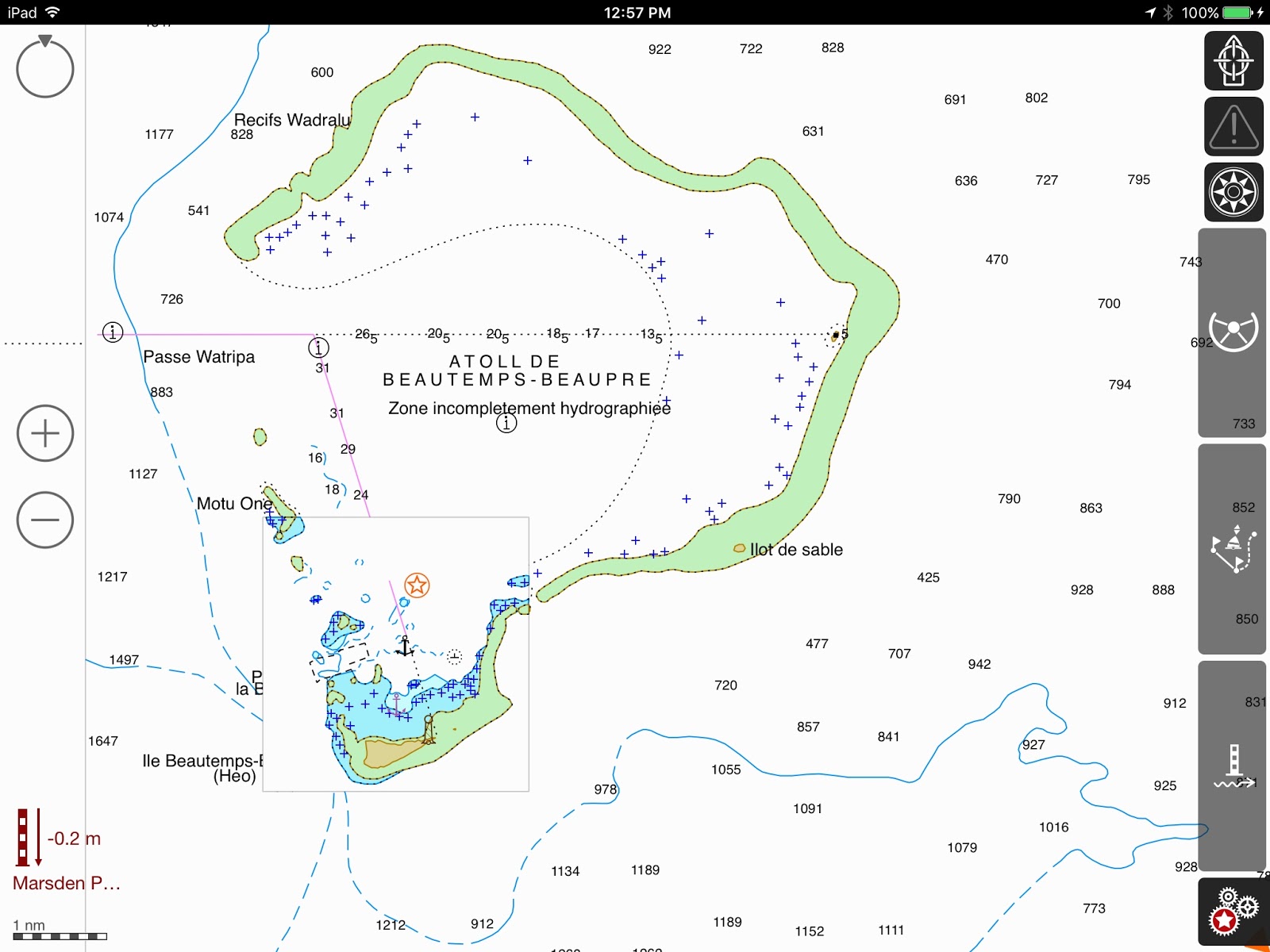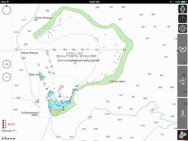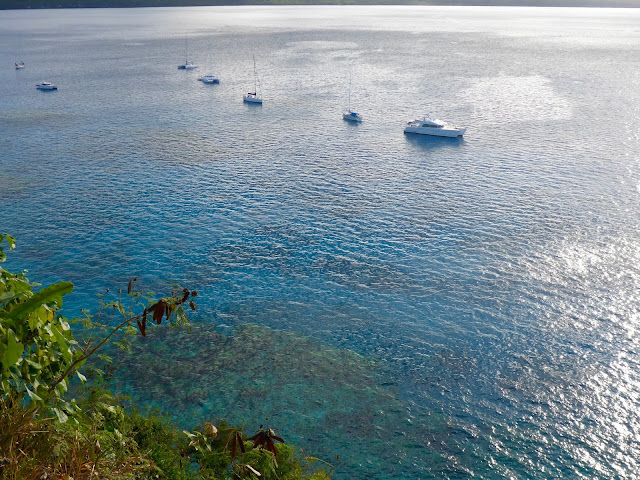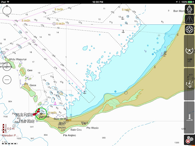 Missed stop: We missed stopping at the Baie of Chepehene, (20*47.515S-167*08.857E) already occupied by a cruiseship. Yet, it is a popular stop where the Notre Dame de Lourdes Chapel sits at Easo Point. Also, the easternmost of the 2 red marks in the bay is noted to be a splendid snorkeling spot, replete with sponges of all colors.