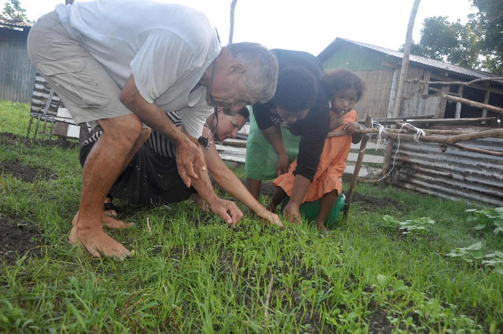 MALAKA – Unisi, the chief’s wife, and her daughter are very good gardeners. They walked us through beds of cucumbers in full production, and were proud of the upcoming long beans, green beans and tomatoes. They too, were out of seeds and our distribution put big smiles on their faces.