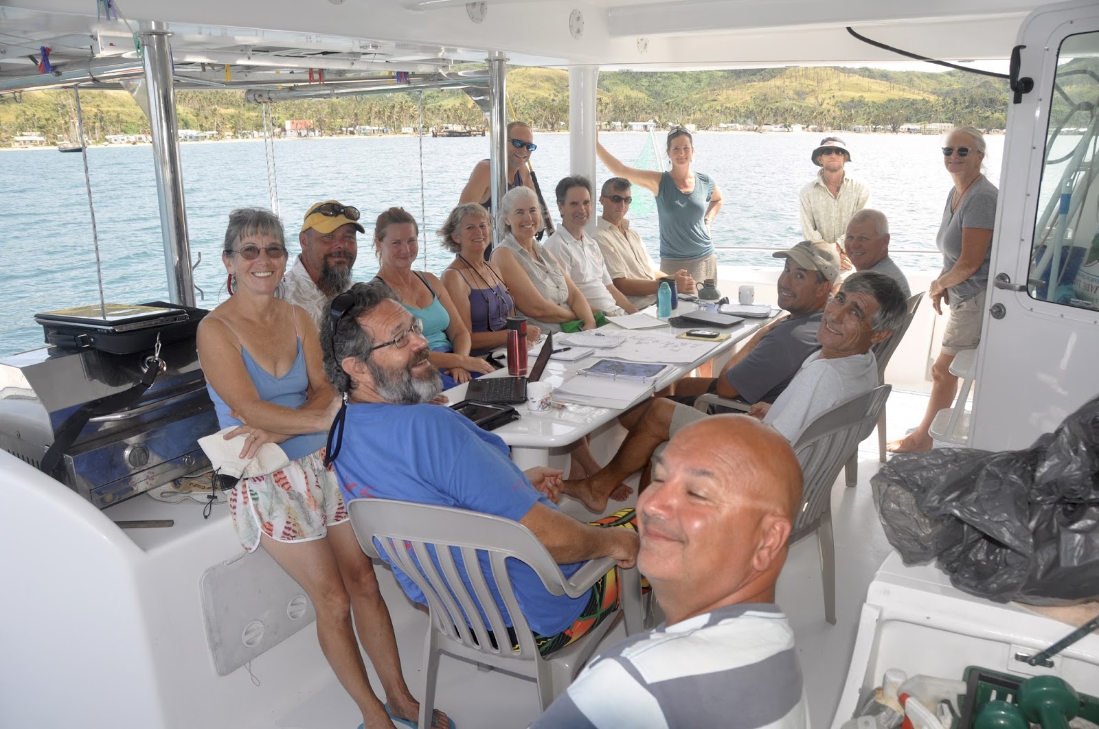 But our timing was awful: when we showed up for our scheduled pesticide presentation, the entire village was in mourning, having lost our friend Biu’s husband the day before. I was ready to turn around, but it was Biu herself, sobbing in my arms, who insisted that we should go on with the presentation. Dressed in black, all the women pulled chairs around the banquet table (for once, there was a table) and while I was choking on words, it was 15-year old Megan (S/V Amelie IV) who pulled herself together and talked about caterpillars and natural pesticide.