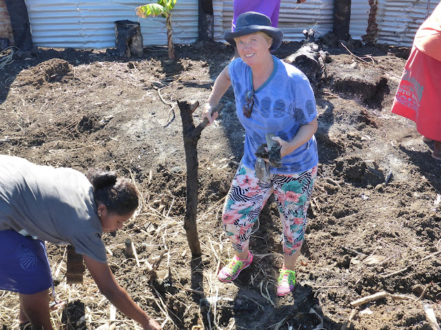 Five days later, we returned with a work party (3 young boys from the World ARC Rally) only to find out that the women had cleared the entire garden, 1/3 of it already tilled and planted. They had seeded all their seeds.