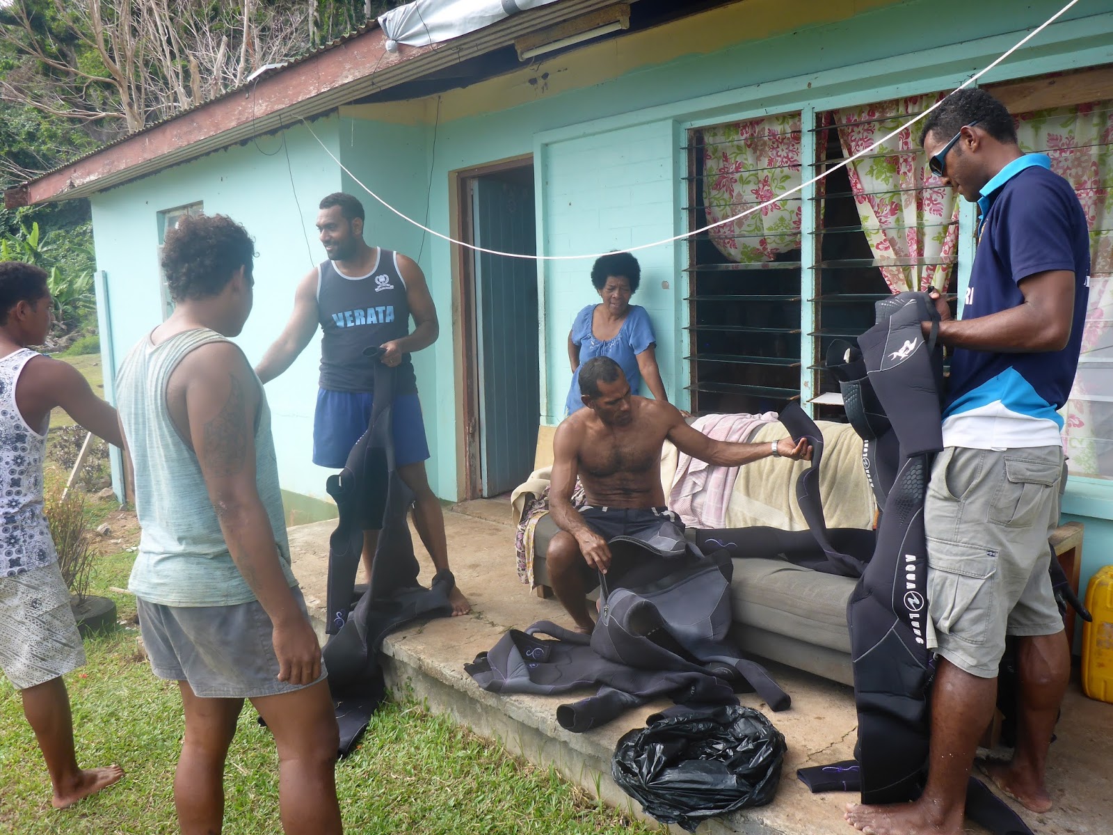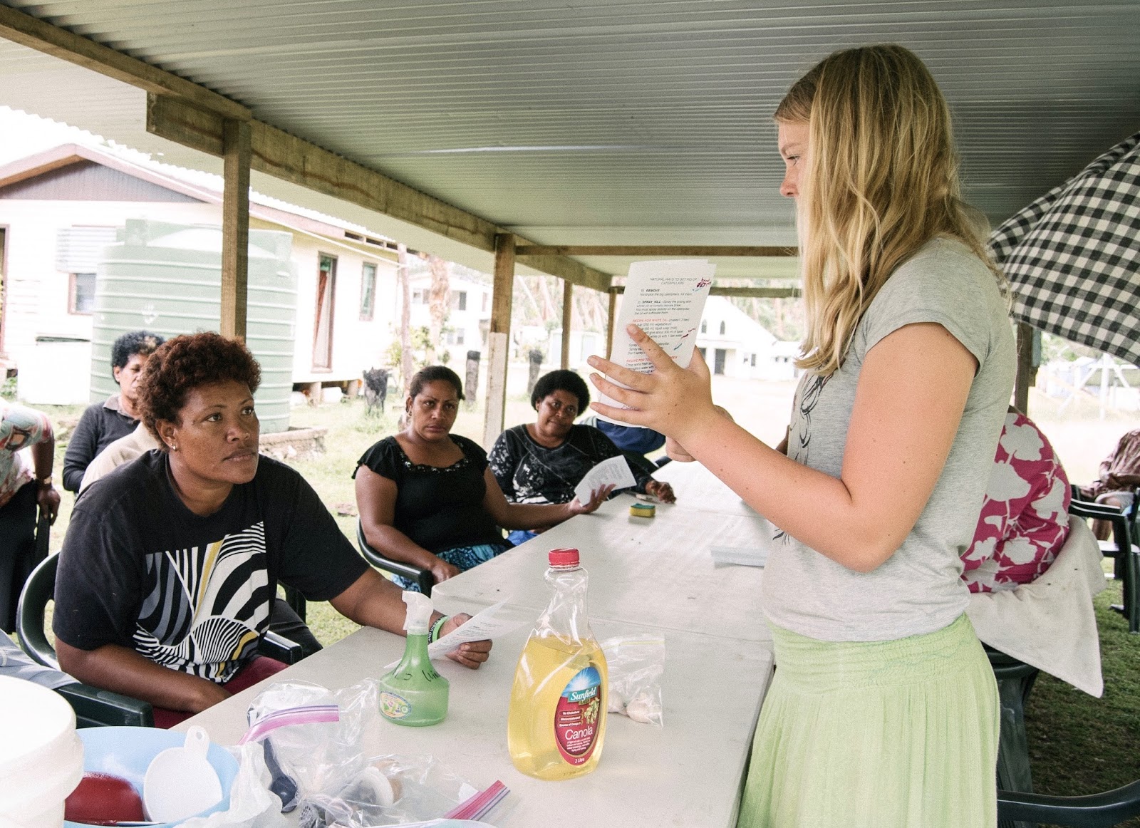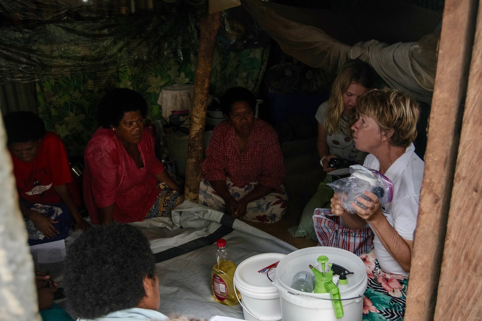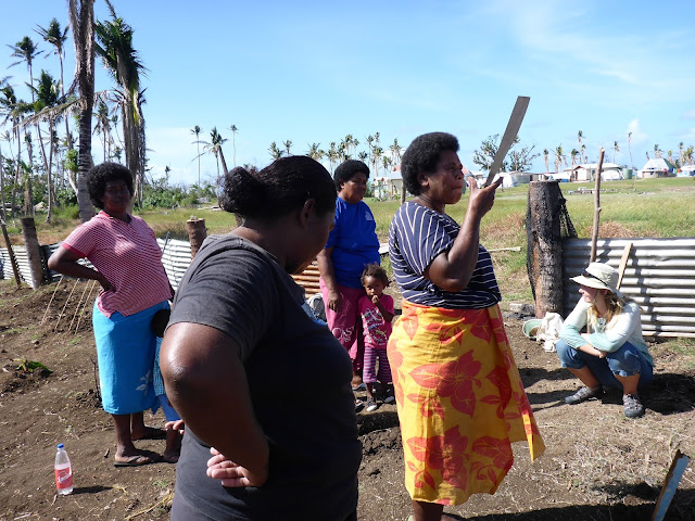 This was an intense program, giving our pesticide presentation to 6 villages in 1 morning, driven by the police pick-up truck, slip-sliding in the mud, sloshing garlic-chili sauce all over, squashing bugs, but unmistakably supporting those beautiful Fijian women in their fight to survive Winston!