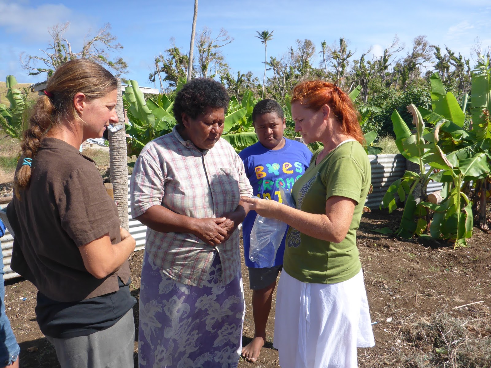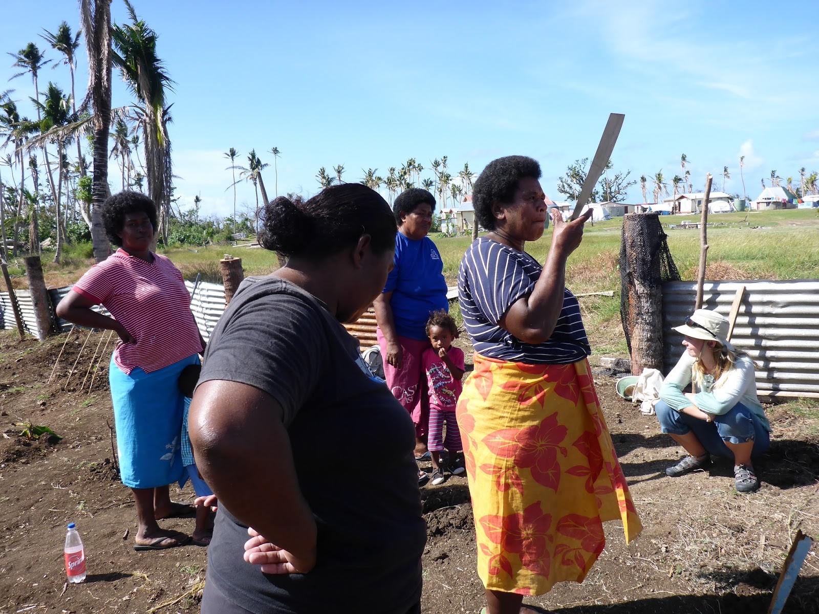 “First Winston destructed all our crops. Us, women, replanted our small gardens but six weeks later cyclone Xena hit us again, not as hard as Winston, but still destructed our new crops. We planted again, but then the caterpillar came. We’d never seen caterpillars before. They ate all our crops. We replanted again, and now the caterpillars eat our plants and the doves eat our seeds. We are desperate!”