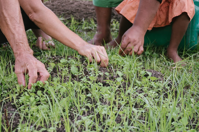 MUA MUA – Lo and her sister have a grip on the garden, a green thumb, and had no idea of how to fight caterpillars. In no time, our little group was walking through the rows and picking and squashing the big, fat, green caterpillars.