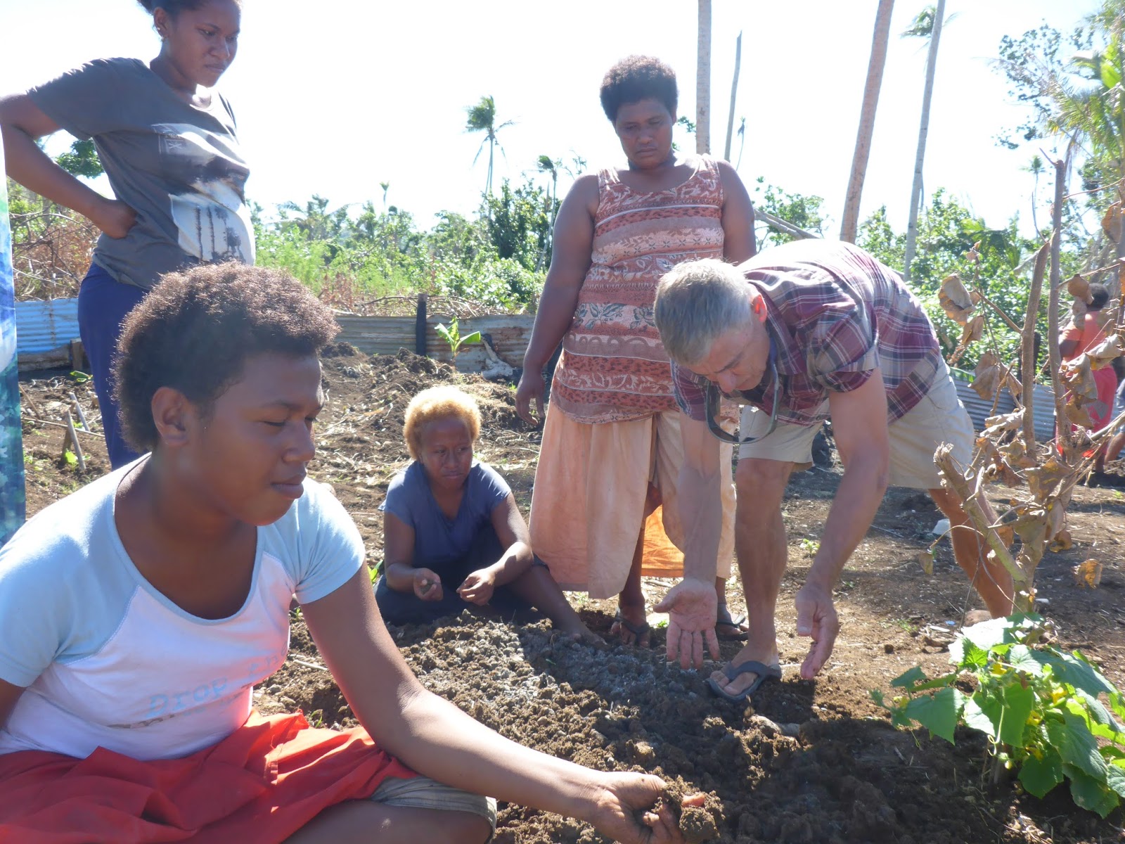 Rama Krishna Fiji Seeds Program. With 100 packs of seeds to distribute throughout Vanua Balavu, we started a community gardening program, complete with seed distribution, composting instructions, proper bed preparation and seeding instruction, and a natural pesticide program. With the OK from the public health officer and the agricultural officer, we went to work in 8 villages.