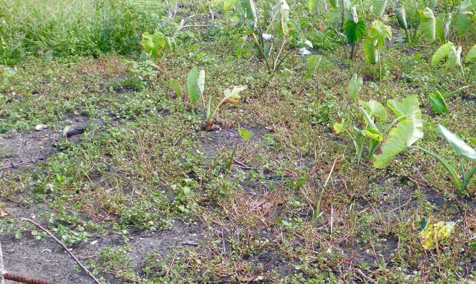 We started with the easy part: walking through the rows of taro and sweet potatoes, removing the bugs and squashing them underfoot. It took a bit of persuading, but the result was immediate: no more bugs!