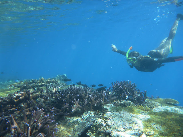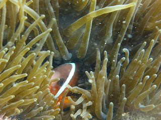 Kindly, passenger Matt donned mask and snorkel and checked it out: too deep. Time for JP to go for a scuba dive: yes, the chain has slipped in crevasses between boulders, 17 meters below. One, two, three twists and we’re free! Not a bad day, JP!