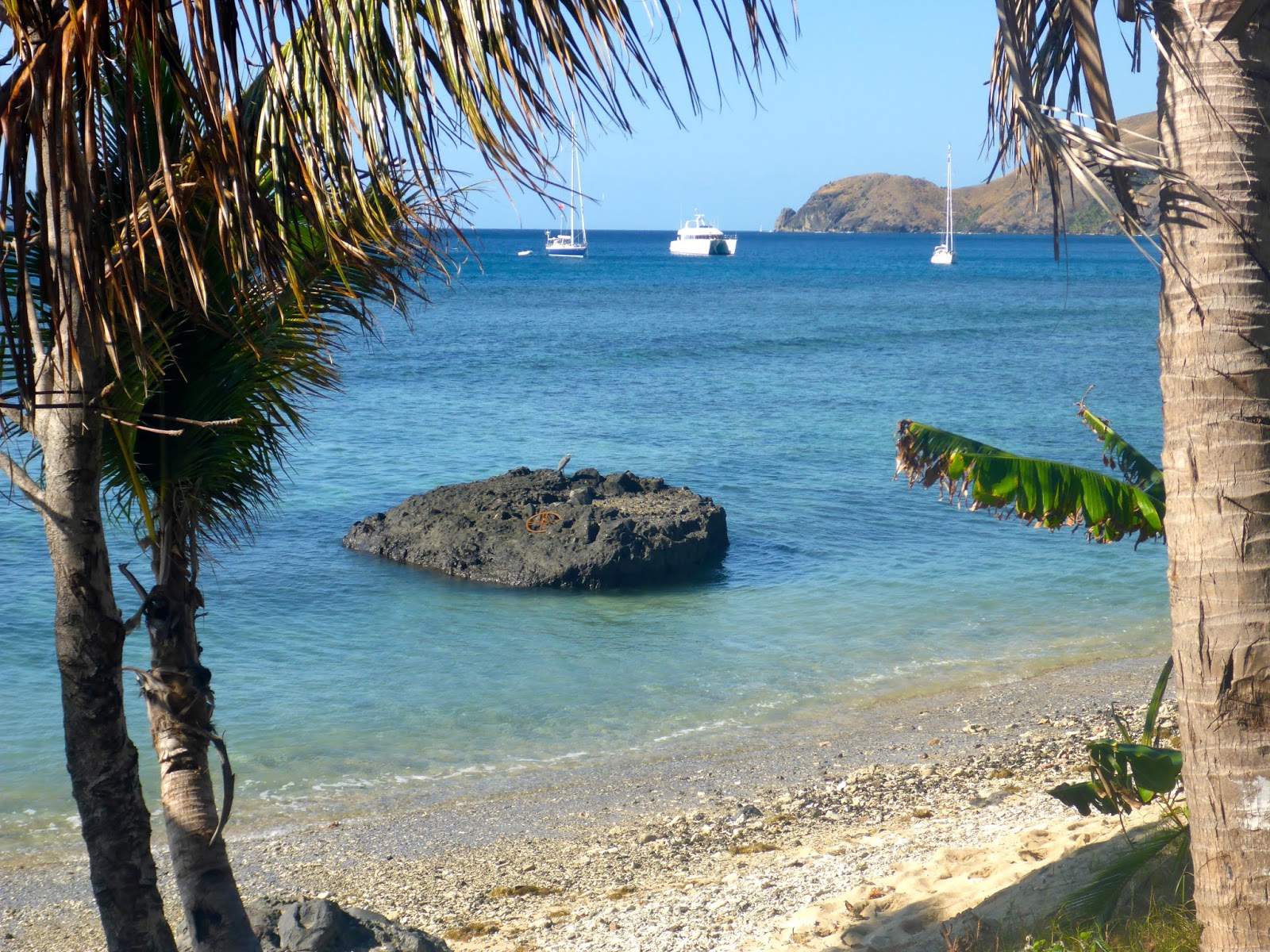 Slaps of congratulations to JP who dropped anchor in a secluded cove so we could all have lunch together.