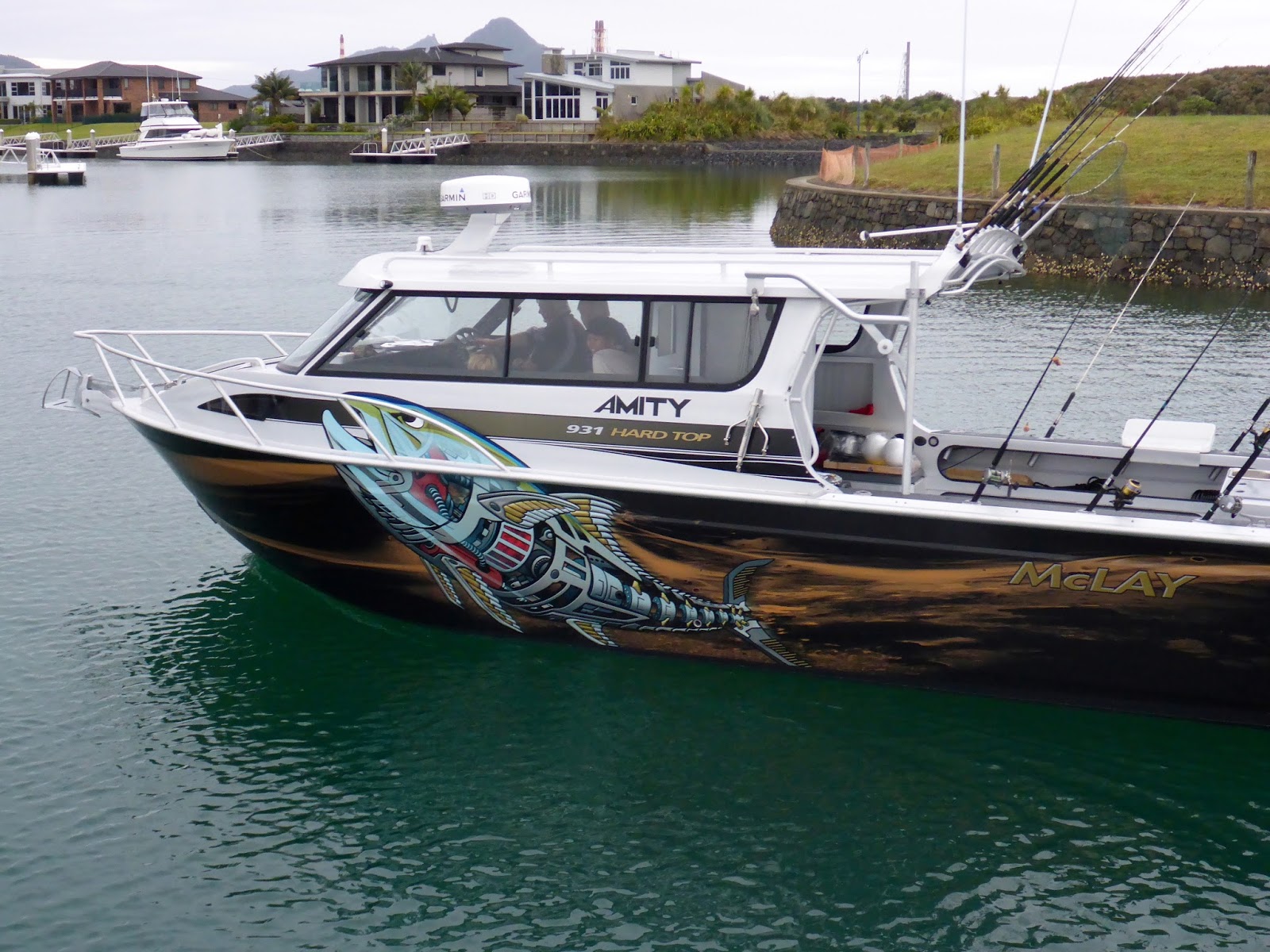 The marina had kindly allowed us to dock at the fuel dock to pick up passengers and lunches and by 10:30 we had 24 passengers, all strapped in their life jackets, ready for a fun day on the water.