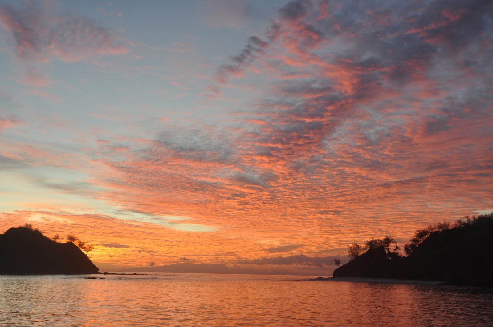 Feb. 25 – Paradise Bay (Bay of Islands) to Horsehoe Bay (Cavalli Islands) – Hurricane Winston had just run amok over Fiji and the 3-meter swells from the NE were a challenge to contend with, especially at anchor. Bonus: our friends on MAUNIE (last seen in Fiji) happened to cruise by and we managed to drop the dinghy and visit for a short while until we all wanted to get out of the damned swell.