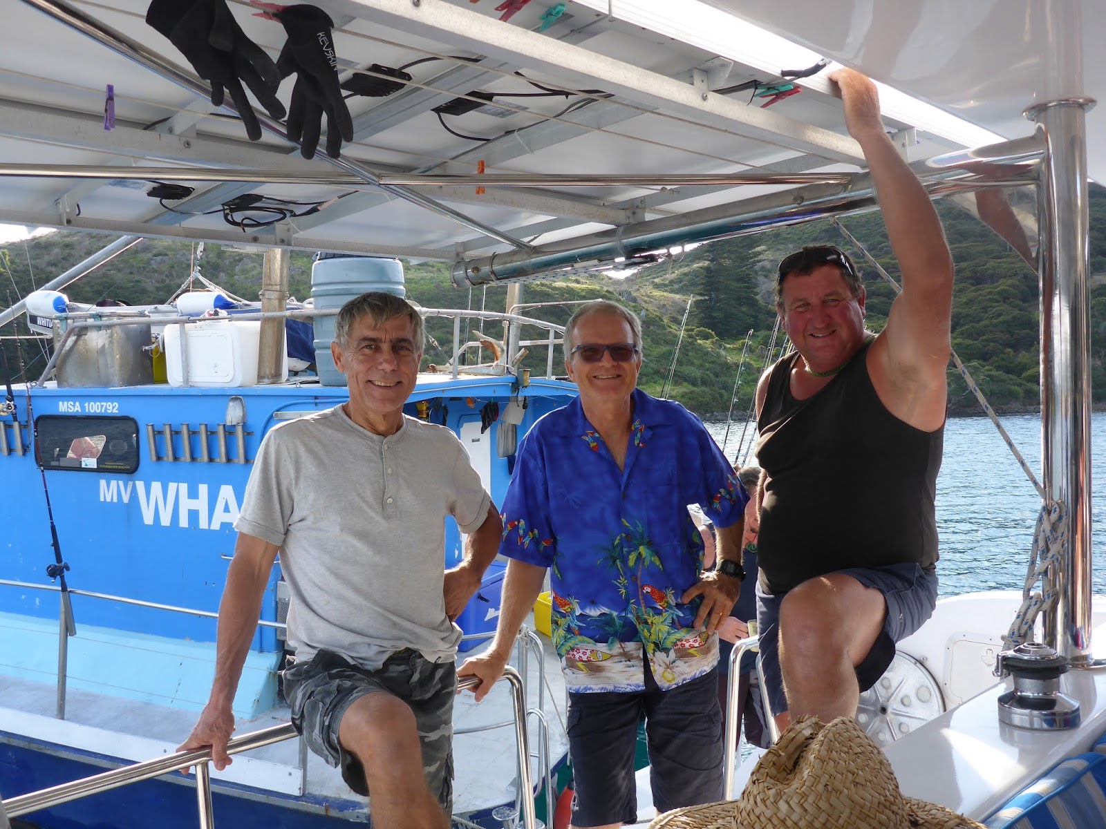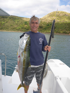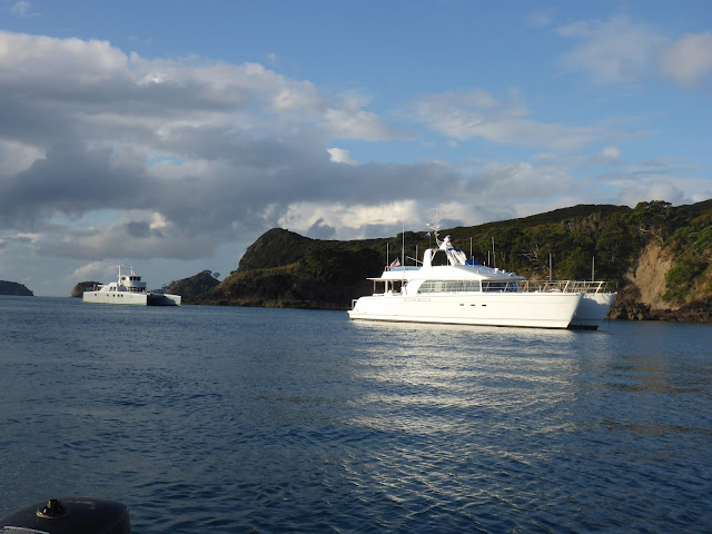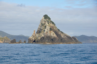 March 10 – Russell-Tutukaka – No wind, covered sky, slight seas, and we’re trolling the 150-200 meter line, hoping for tuna… not a thing, and I’ll leave it at that! We dropped anchor in the shallows of Tutukaka harbor and JP went to shore to make the final preparations for tomorrow’s trip to the Poor Knights Island.
