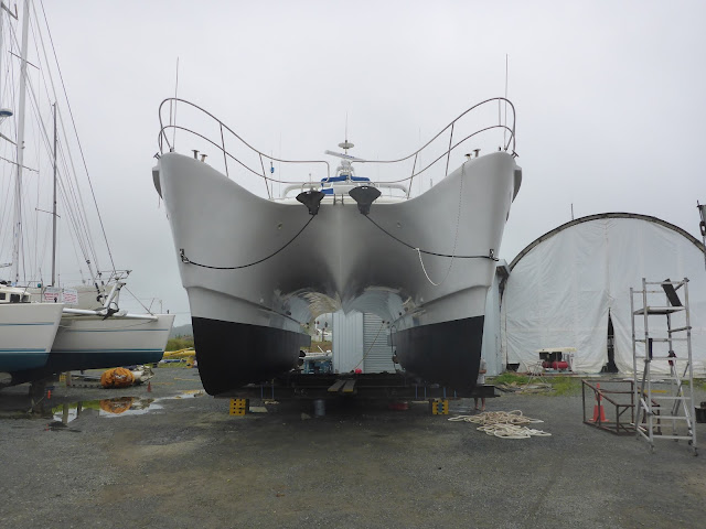 Would the guys dare to ride? JP was adamant, he was not taking DOMINO in these conditions. Jeremy and Russell made a recon foray into the roiling surf. What would the decision be? Ride or not ride? We were pretty sure they would not go to Leigh, a punishing ride. But, lo-and-behold, there they were! Almost the whole fleet was scooting past us, waving, into the nightmare.