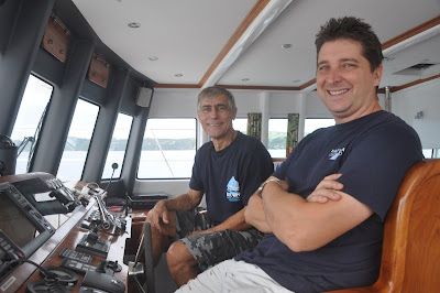 It was to be a late start, so JP and I went trolling around KariKari … a dozen skipjack, a hundred dolphins, no tuna, but still no wind and glassy seas. How long would our weather luck hold?