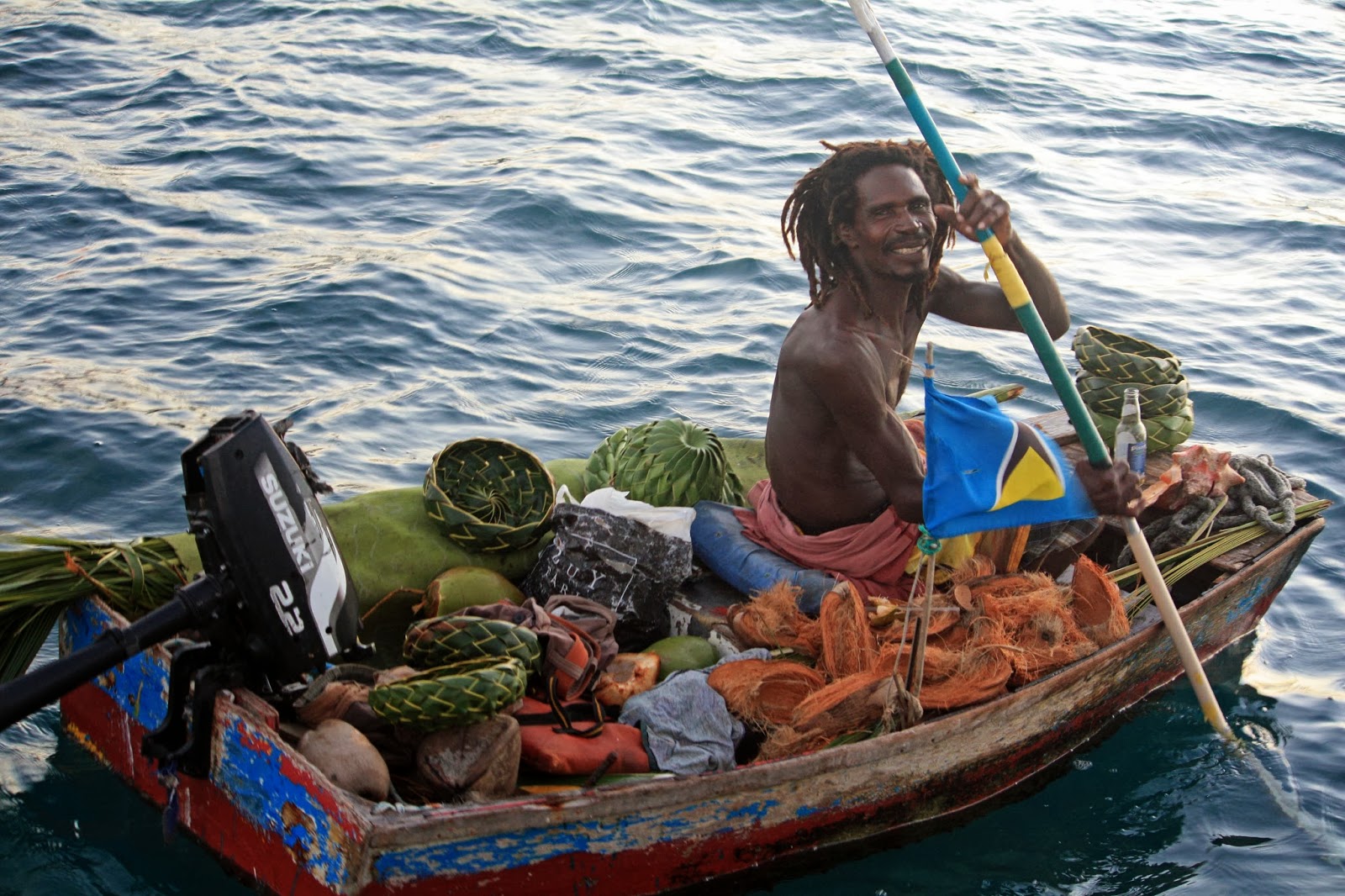 the blue Caribbean Sea.