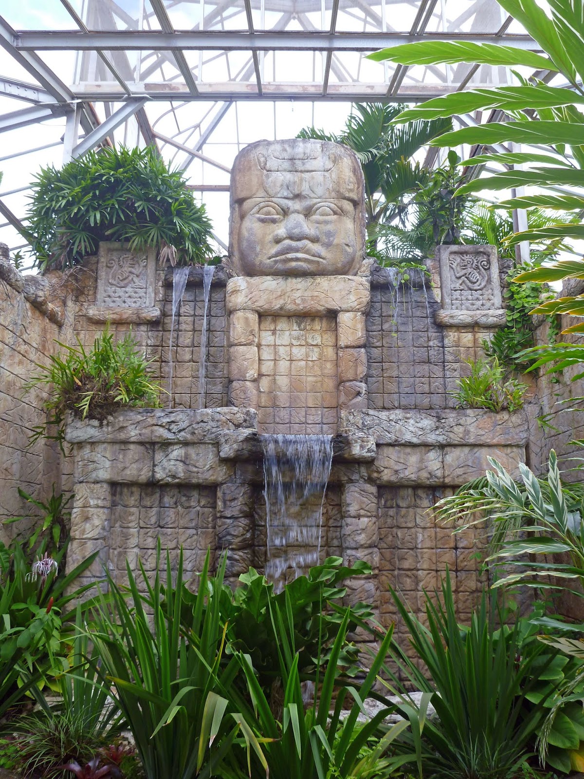 Rainforest Conservatory with parrots and a Mayan style “ruin”. Also