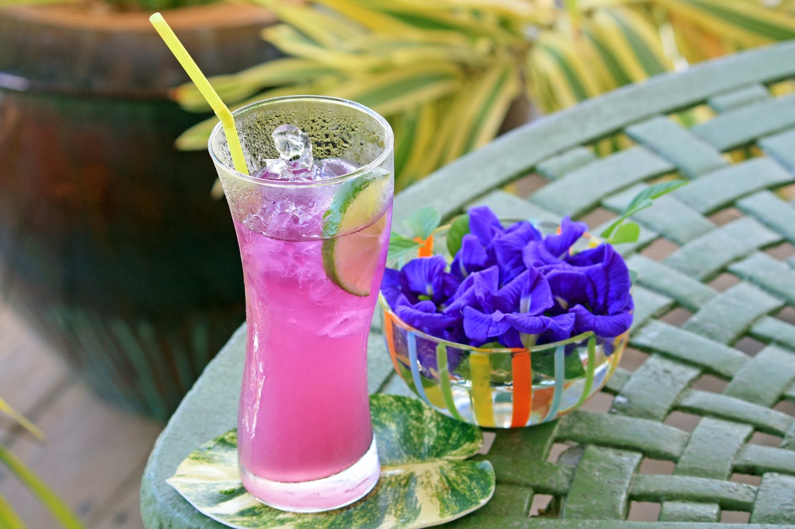 We had a delicious, if pricy, lunch at the estate. Kim enjoyed a colorful tea made from the flowers in the bowl.