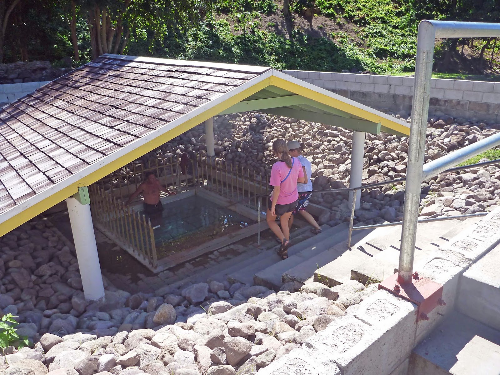 and locals alike. All three of us eased into the very warm water and could only