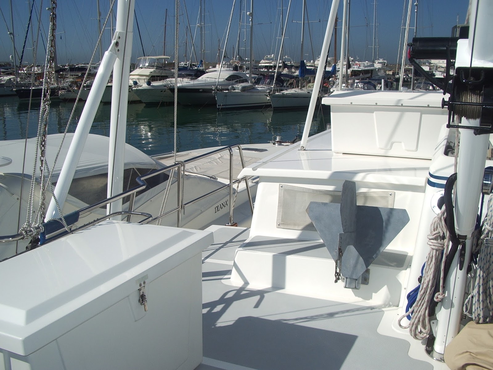 We meet Morris and Gail at Half Moon Bay Marina and quickly settle on Moritz – not only have we been aboard previously but Morris and Gail have cruised aboard Envoy with us in the Aegean Sea. In fact they’re also meeting us this year for a week in Sicily.