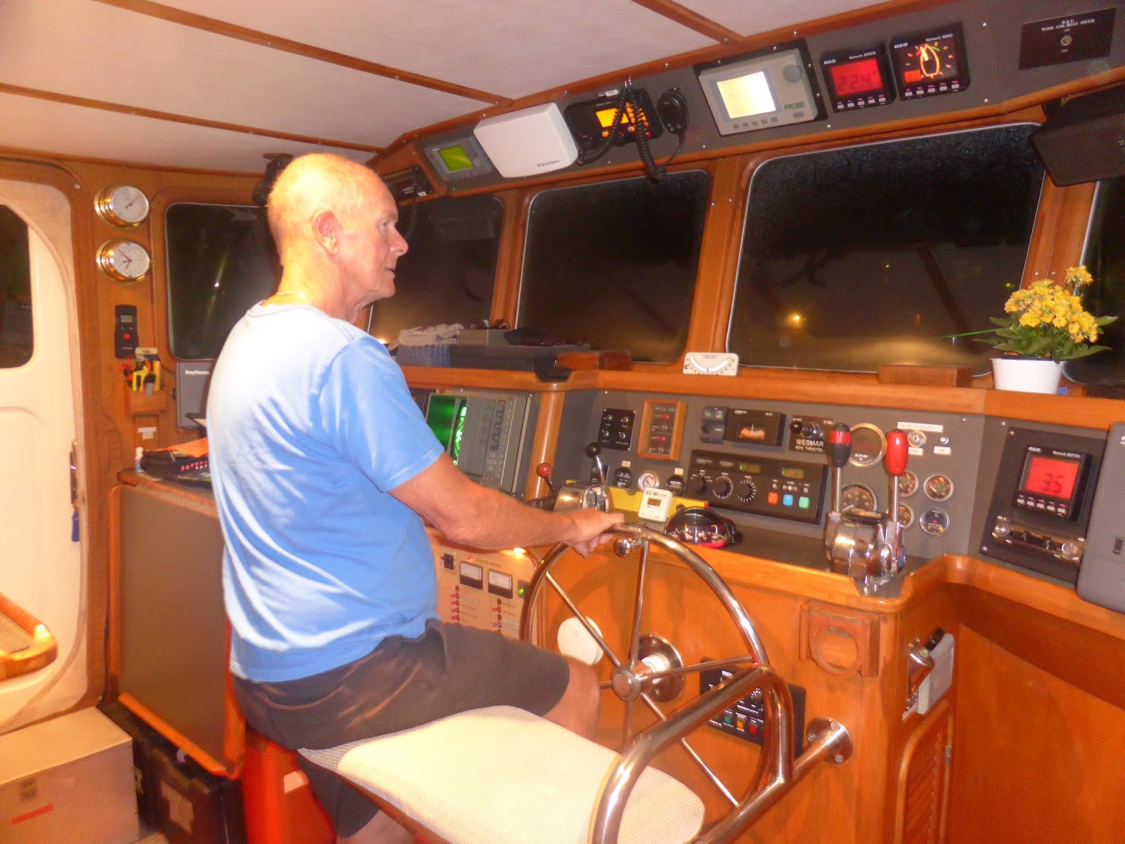 Planing boats tend to have a different sound at night compared with their displacement cousins as wind-driven wavelets hit their planing strakes and make a little bit of noise, but we’re used to this from our former days of owning planing boats so it’s no problem.