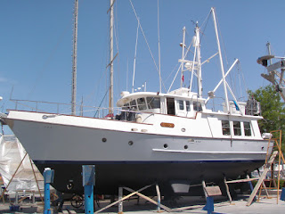 The staircase to Moritz’s flybridge is way better than the ladder we had on our last boat