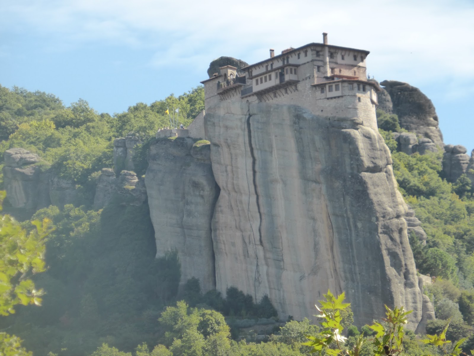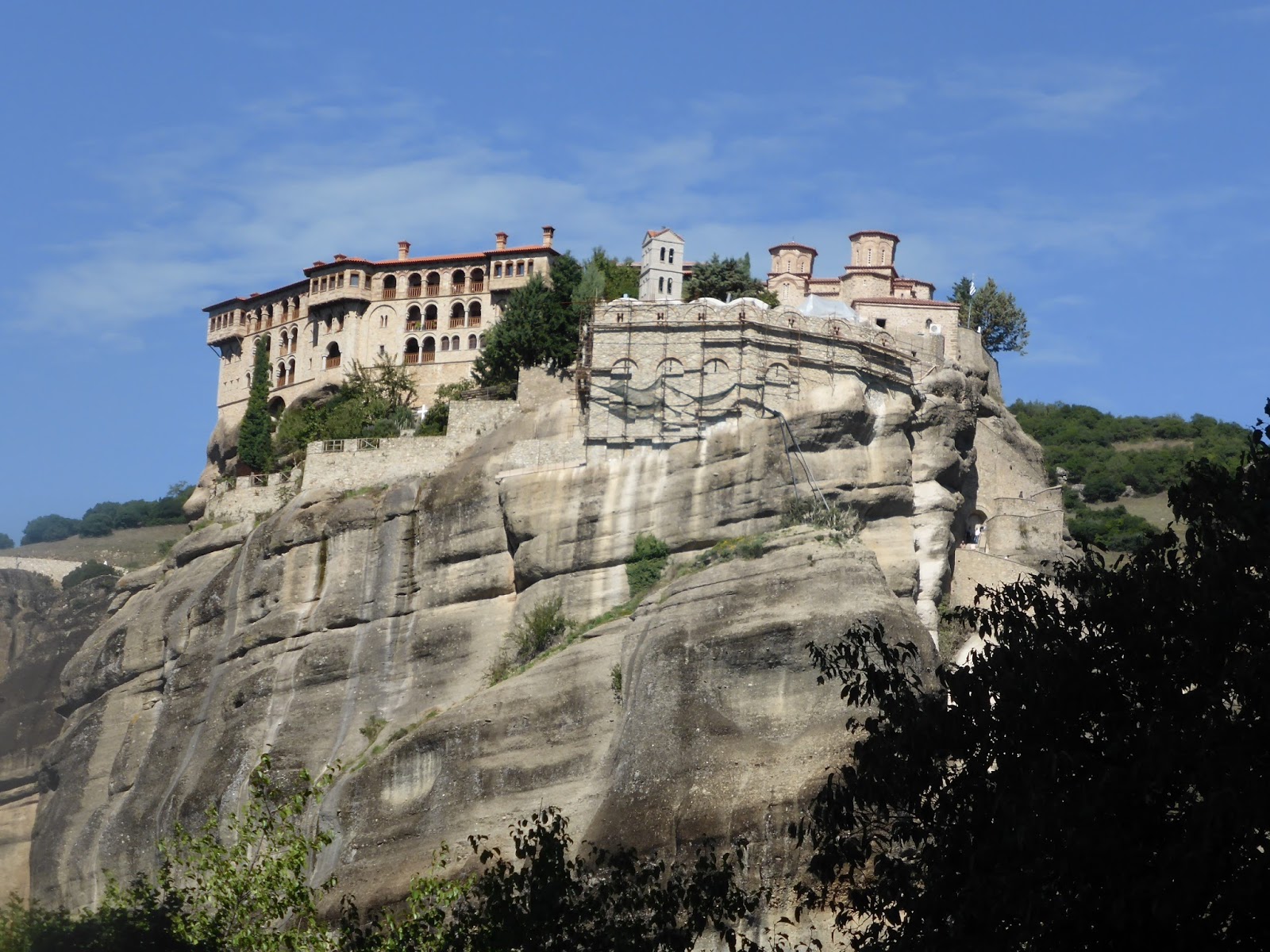 We moved on to the village of Metsovo, using it as a base to visit the area’s highlight – the monasteries of Meteora, a word meaning “suspended in the air”, as the monasteries are built on seemingly inaccessible towering rock pillars. There is evidence of cave habitation here 23,000 years ago, but the first monasteries were built around the 12th century. Eventually they numbered 20 but today only six remain, each inhabited with less than 10 monks or nuns. In former times the monasteries could only be accessed by long wooden or rope ladders, or using wicker baskets lowered by hand-powered winches. But these days roads have been built to accommodate the lucrative tourist trade – as Diane said, “these nuns have got a right little earner going” as you pay for the entrance fee and then extra to visit certain areas. As Lonely Planet says – visiting two or three is probably going to suffice, but they sure are spectacular.